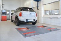 Hala serwisu mieści w sumie 12 stanowisk: 6 naprawczych z podnośnikami dwukolumnowymi, stanowisko do geometrii oparte na podnośniku nożycowym, 3 stanowiska płaskie do napraw elektrycznych oraz stanowisko szybkiego serwisu i recepcję. Przyjęcie auta do serwisu odbywa się przy użyciu ścieżki diagnostycznej CERTUS z opcją badania 4×4, pracującej na jednym stanowisku z podnośnikiem stemplowym. System zastosowany w urządzeniach CERTUS automatycznie – bez udziału pracownika – rozpoznaje rodzaj napędu i przeprowadza badanie bez obawy o uszkodzenie samochodu.