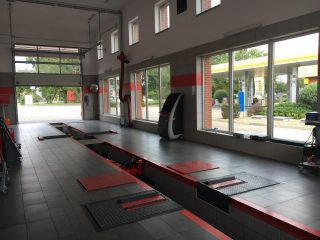 Budynek został wzniesiony w technologii płyty warstwowej, a dodatkowo na jednej ze ścian zamontowano obszerne okna, które wpuszczają do wnętrza dużo światła. Lokalizacja bezpośrednio przy wjeździe na działkę z drogi wojewódzkiej to wprost idealne położenie, które wręcz zaprasza klientów do skorzystania z usług przeglądów rejestracyjnych.