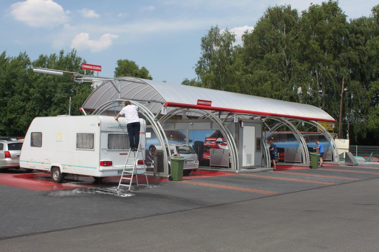 Uzupełnieniem dla biznesu przeglądów rejestracyjnych jest czterostanowiskowa myjnia samoobsługowa Cleanart z wiatą typu Sferica. Trzy stanowiska są zadaszone, natomiast czwarte (z żurawiem) jest przeznaczone dla pojazdów do 4 metrów wysokości. Myjnia została skompletowana „na bogato”. Oprócz 4 standardowych programów mycia klienci mają do dyspozycji także lancę ze szczotką oraz natrysk specjalistycznej chemii do mycia felg i usuwania insektów.