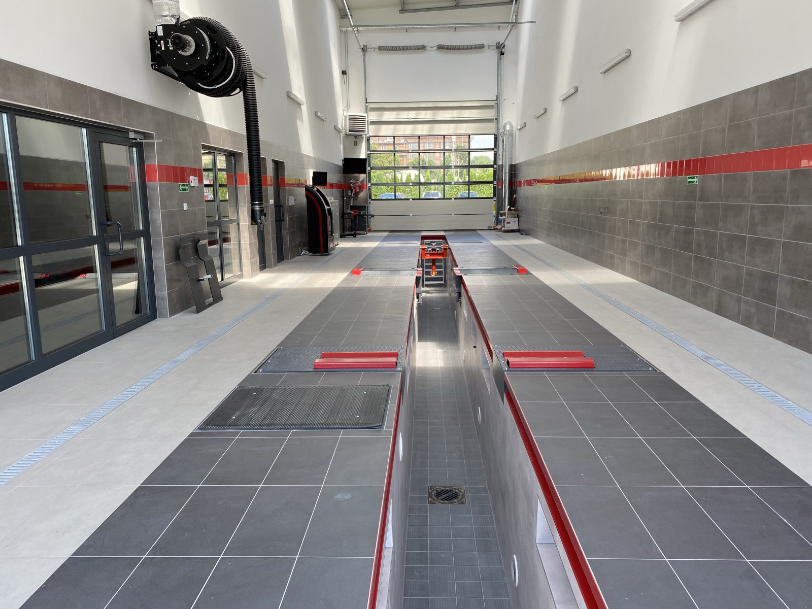 Rozplanowanie i wielkość obiektu została podporządkowana jego funkcji. Obyło się bez niepotrzebnych kompromisów – kluczowa była wygoda i ergonomia użytkowania. Budynek wzniesiony jest w całości w konstrukcji murowanej ze stalowym dachem. Każde ze stanowisk roboczych jest obszerne, a zainstalowane w dachu okna wpuszczają do środka dużo światła. Hala diagnostyczna wyposażona w uniwersalną linię diagnostyczną CERTUS pozwala na sprawne badanie ciągnika siodłowego z naczepą. Wyposażenie linii w komplet funkcji dodatkowych (4×4, wspomaganie wyjazdu w rolek i inne) zapewnia bezpieczne badanie każdego niemal pojazdu poruszającego się po drodze.