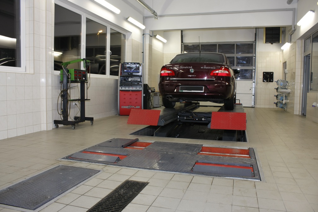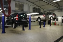 Główna hala serwisu mieści 8 stanowisk naprawczych. Sześć wyposażono w elektromechaniczne podnośniki dwukolumnowe o udźwigu 3,2 tony. Kolejne, siódme stanowisko przewidziano dla cięższych pojazdów, dlatego pracuje ono w oparciu o podnośnik dwukolumnowy o udźwigu 4 tony. Ósme stanowisko wyposażone zostało w podnośnik nożycowy Efficar do ustawiania geometrii.